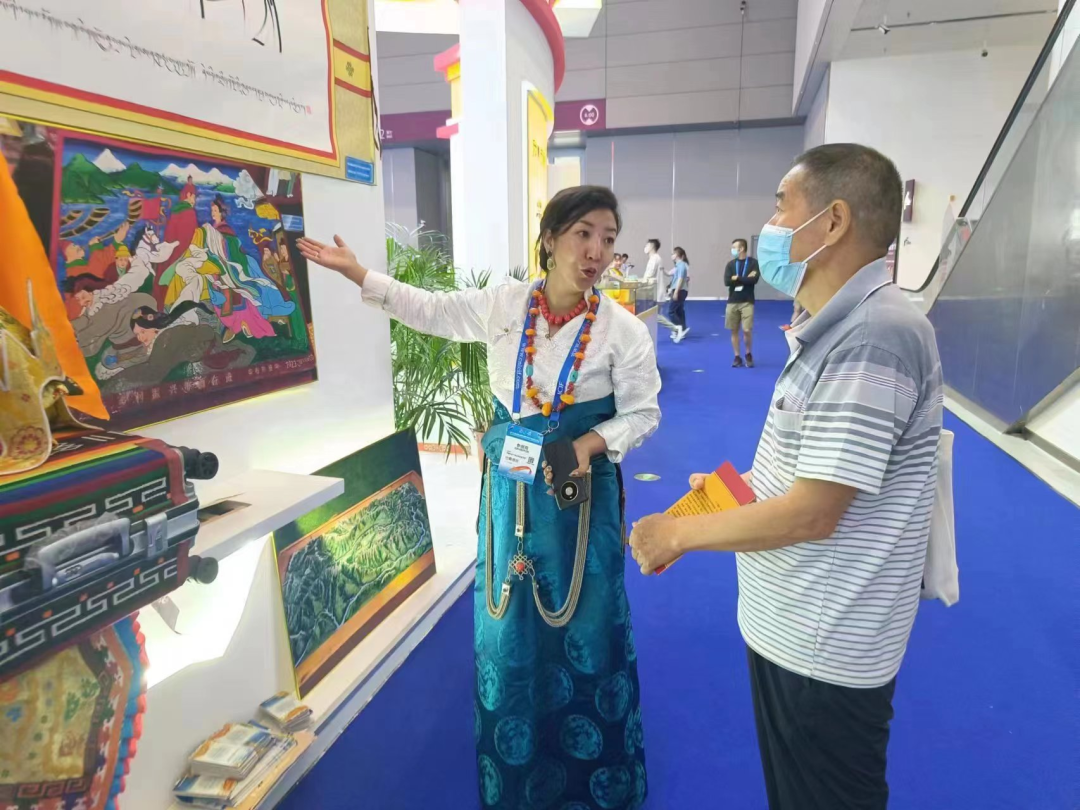 在展览活动中,那曲市主打藏北草原文化文艺产品宣传推介,展柜以实物讲解、视频讲解,发放宣传资料等形式,为前来观展的市民群众提供了可观、可购、可玩、可品尝、可体验的那曲文化产品。