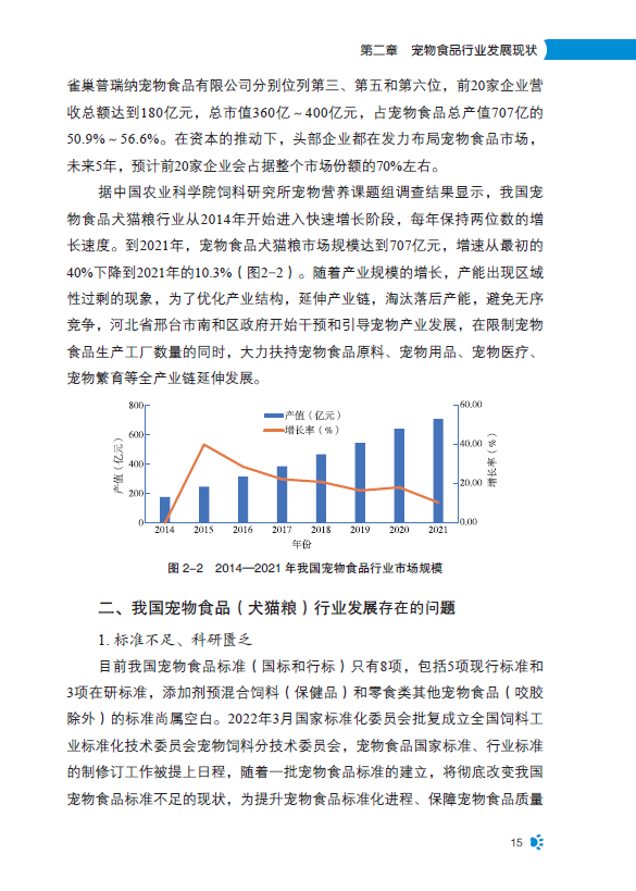 本书介绍了我国宠物行业发展概况,分析了2015年以来我国宠物食品行业发展历程及现状。内容涵盖我国宠物食品发展速度、规模,宠物食品主要生产基地,宠物食品线上线下销售数据,我国宠物食品企业前30强,宠物食品质量安全检测,宠物营养与食品研究现状,科研力量,人才状况,农业农村部宠物饲料法律法规,宠物饲料标准现状,进口宠物饲料情况,资本市场对宠物食品的影响以及影响我国宠物食品发展里程碑式的事件等。