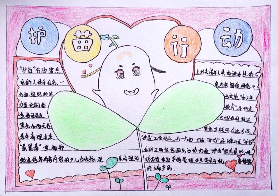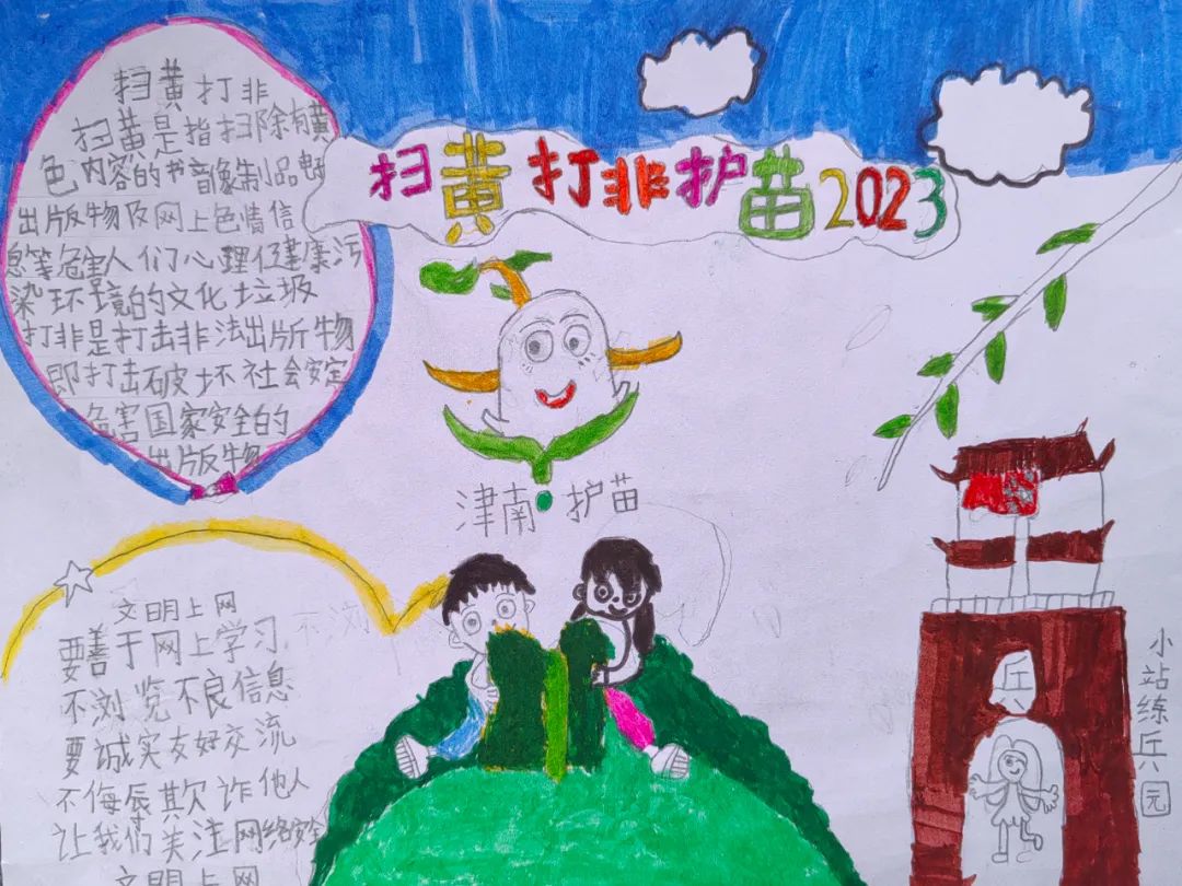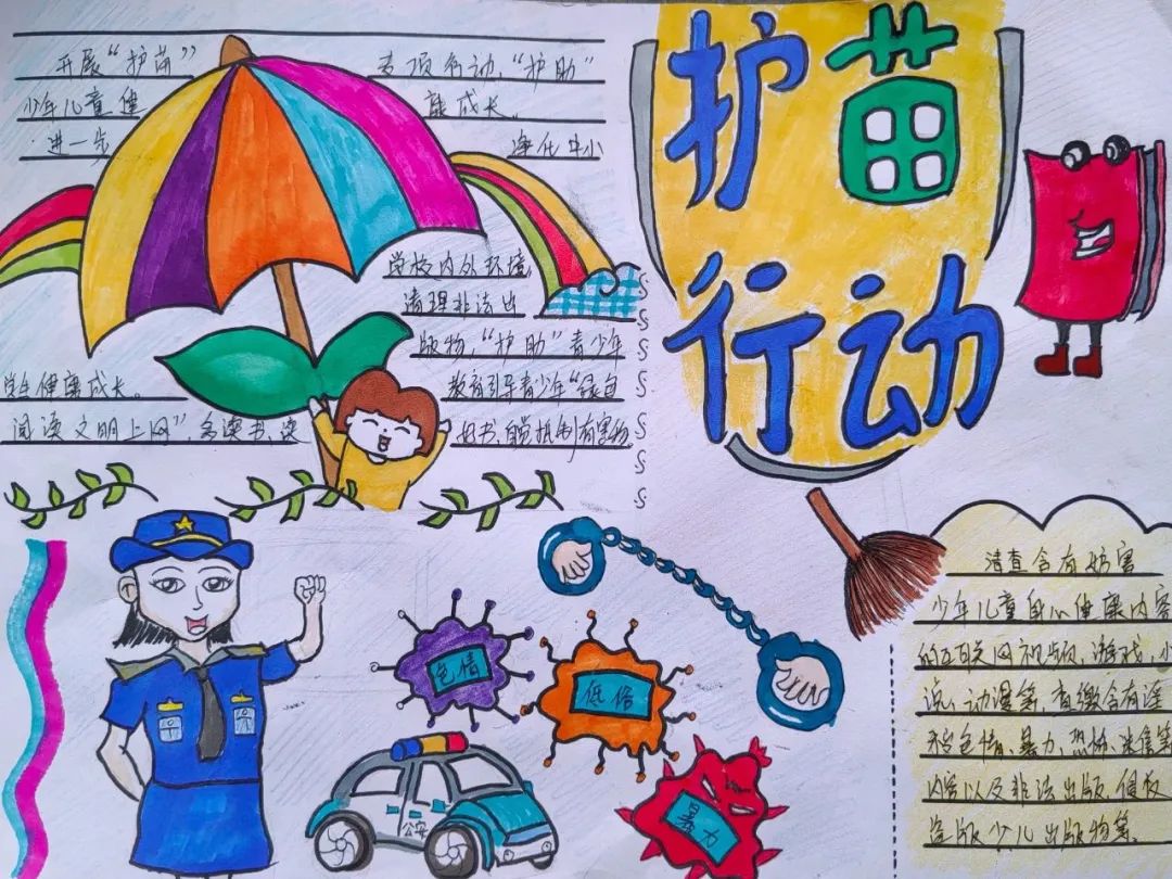 小读者们以深受同学们喜爱的津南区“护苗”卡通形象“苗苗”为主要元素,围绕绿色阅读、文明上网、自觉远离和抵制非法出版物等未成年人保护方面普法内容,创造性地融入了小站稻、小站练兵园、葛沽高跷等津南文旅特色,在提升法律意识和自我保护能力的同时,也表达出了对津南传统文化和旅游资源的浓厚兴趣。