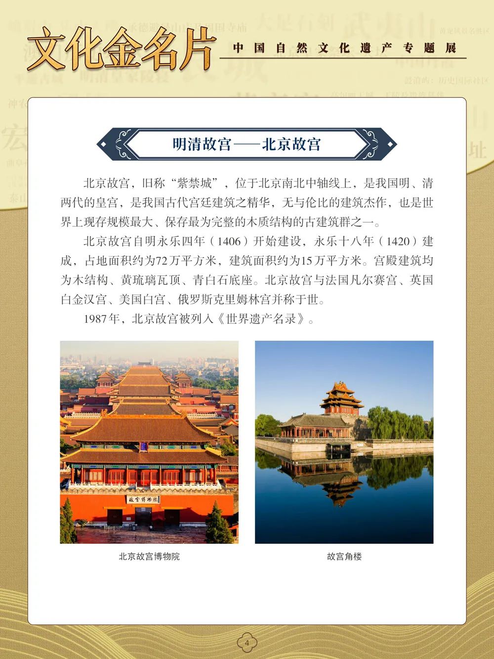 自1985年12月加入联合国教育、科学及文化组织的《保护世界文化和自然遗产公约》以来,我国的自然文化遗产事业蓬勃发展,截至2022年年底,共有56个项目被联合国教科文组织列入《世界遗产名录》。这些自然文化遗产充分展示了中国自然文化遗产的国际影响力,是国际社会更好地了解中国国情、理解中国发展道路的重要窗口,是名副其实的“文化金名片”。在文化和自然遗产日到来之际,我们特别策划了“文化金名片——中国自然文化遗产专题展”,通过全面展示我国拥有的每一项世界遗产,助力营造保护自然文化遗产的良好氛围,提高大众的自然文化遗产保护意识,动员全社会积极关注、保护和展示我们共同的“文化金名片”。