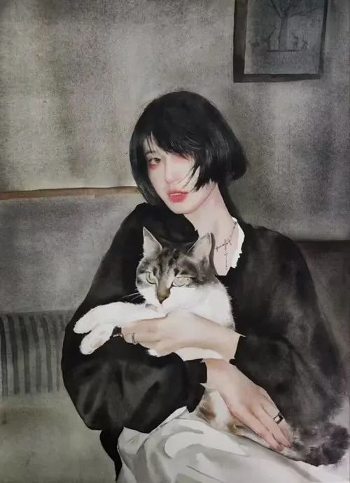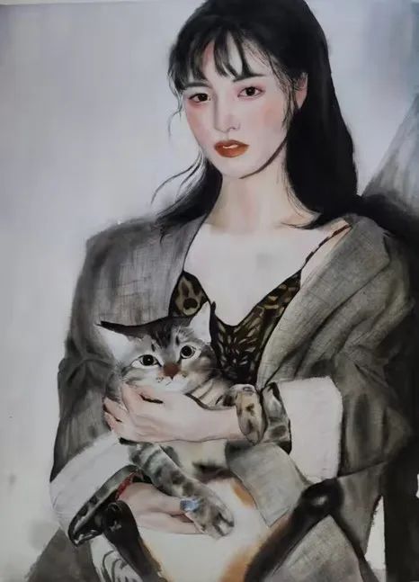 ▲ 曾慧玲《抱猫的女孩(二)》56cm×78cm