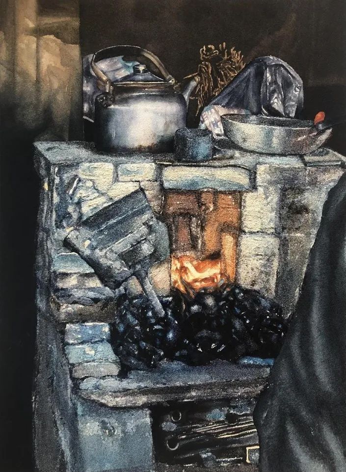 ▲ 赵姗艳《土灶煤烟熏岁月》58cm×77cm