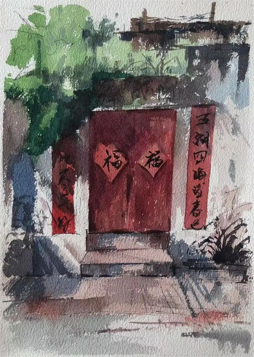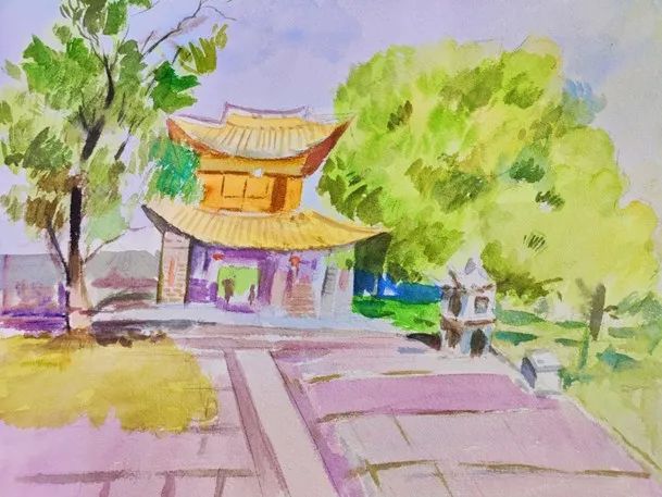▲ 王萃婷《大理剑川沙溪·写生》38cm×54cm