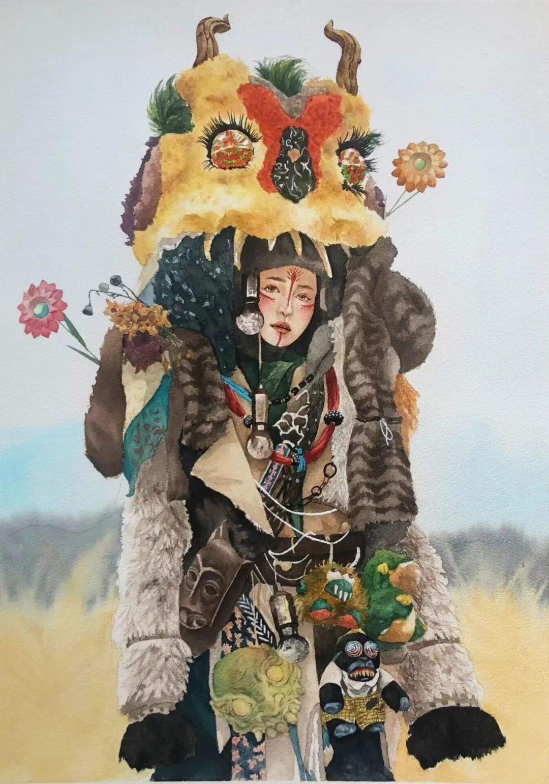 ▲ 周天若《傩》56cm×76cm