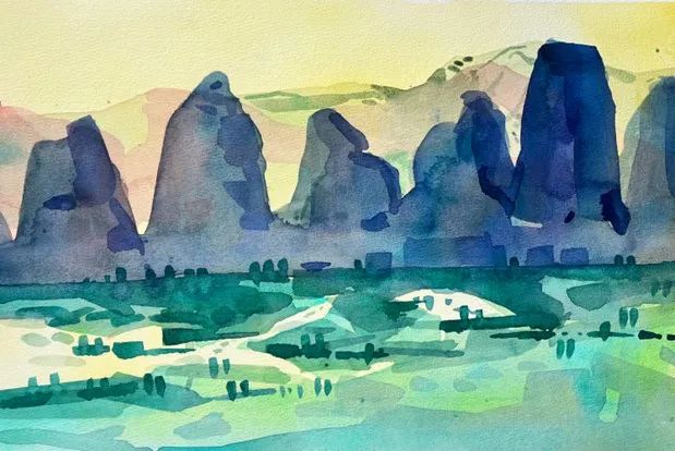 ▲ 王萃婷《大理之行·沙溪》52cm×70cm