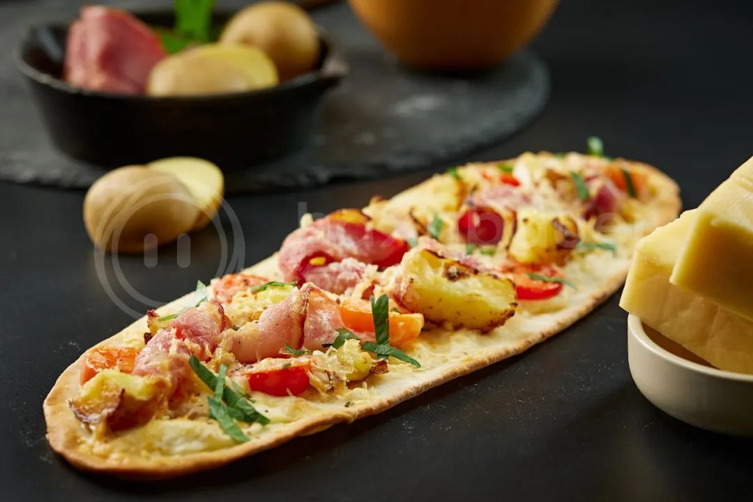 相传起源于阿尔萨斯地区,本来是作为石窑测温用的薄饼,意外的发展成为一种特色美食,风靡德国!饼底非常香脆,再加上培根搭配芝士,浓郁香脆,连吃3块都不嫌多!