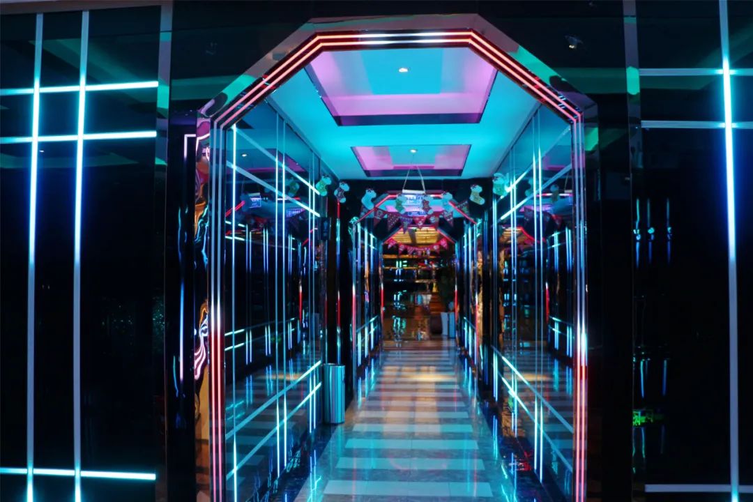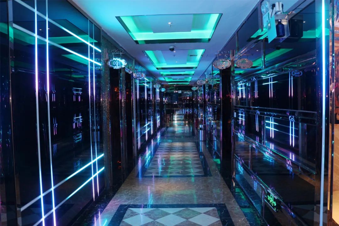 炫彩夺目的走廊,个性十足的线条灯光,让每一处都显得十分酷炫。
