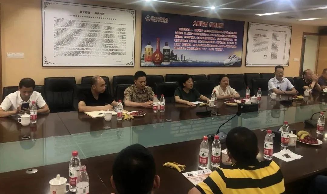 6月10日,古田县企业与企业家联合会会长江怀生、秘书长朱振清带领相关企业家考察团走进福矛酒业集团交流学习,并召开座谈会。建瓯市政协副主席、工商联主席、企联会长江建宏,兼合式党支部书记、建瓯市企联监事会监事长范忠健,建瓯市工信商务局副局长、企联执行副会长兼秘书长张家飚,福矛酒业集团工会主席范猷蓉等陪同参观。