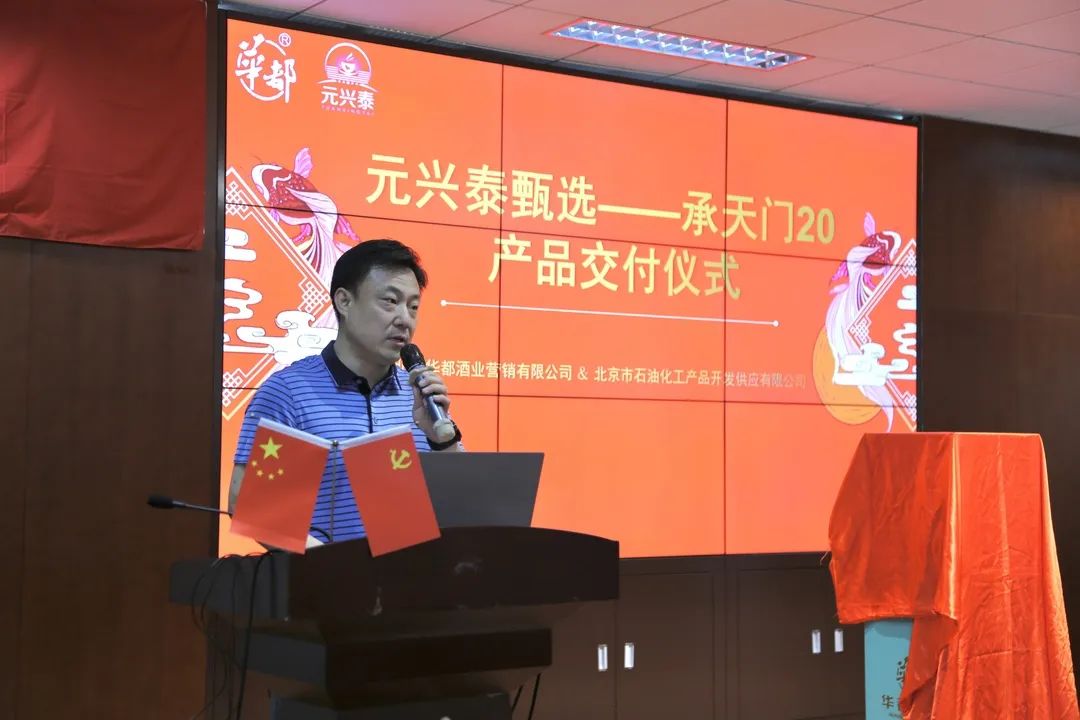 产品交接仪式上,华都酒业总经理朱华介绍了茅台帮扶华都的历史,他表示,北石化公司经营实力强大,销售渠道丰富,在全国拥有广泛的知名度,本次双方的跨界合作,不仅为华都酒厂的全体员工打下一剂强心针,更体现了北石化对华都的认可与支持。相信在双方精诚合作下,将为“承天门20”打开更广阔的发展空间,推动酱酒文化繁荣与发展。