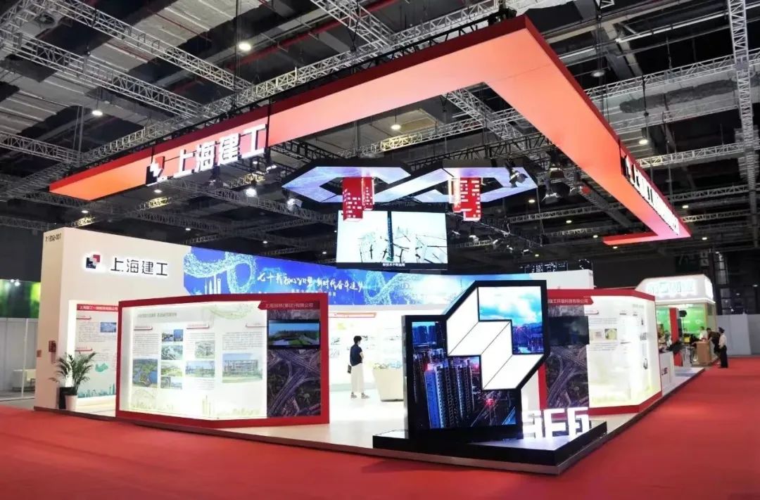 上海建工以“数智建造•碳索未来”为主题亮相首届碳博会,携旗下研究总院、一建集团、二建集团、四建集团、五建集团、园林集团、市政总院、建材科技、环境科技等9家子公司入驻“节能增效”展区,全方位呈现近年来上海建工对于建筑全生命周期绿色低碳和节能增效实践的持续探索,展示了上海建工在科技赋能下将绿色化理念践行到项目的投资策划、勘察设计、生产加工、建造施工、运营维护、拆除回收等全产业上下游环节的最新技术、研究成果和实践案例。