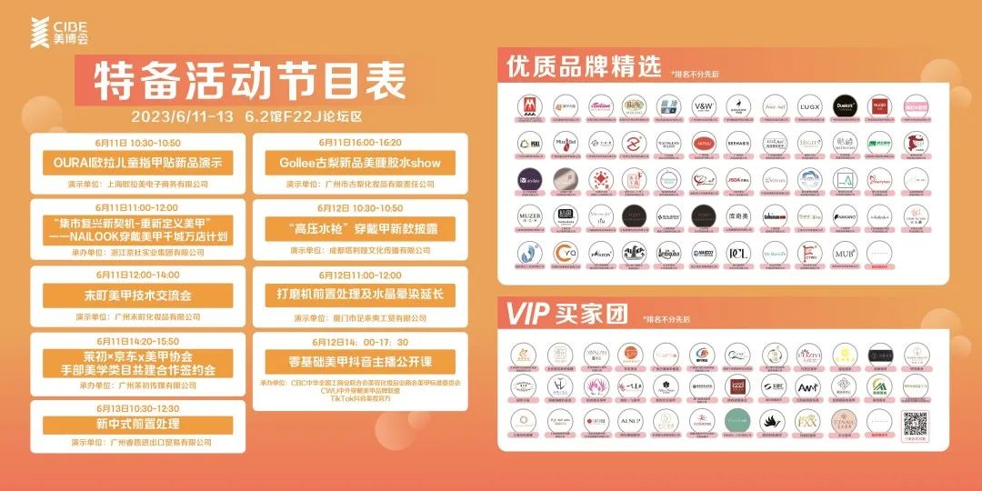 在这里,捕捉细分领域新动向。新鲜会——未来新品落地会集合美博会优势资源,让与会者更早体会到即将面世的新产品,更早把握新鲜商机;团长崛起 抱团增长——2023中国(上海)团购大会暨第四届(快团联盟)全国团长帮卖大会邀请快团团、群接龙、微店、群团团的全国TOP团长,对接全国优质货品、共商发展;美业风口论坛——新经济、新消费下生美门店数字化改革与新教育结合,围绕如何利用数字化工具提升高效经营管理;NAILOOK穿戴美甲、末町美甲、茉初美甲等美甲美睫系列交流活动……