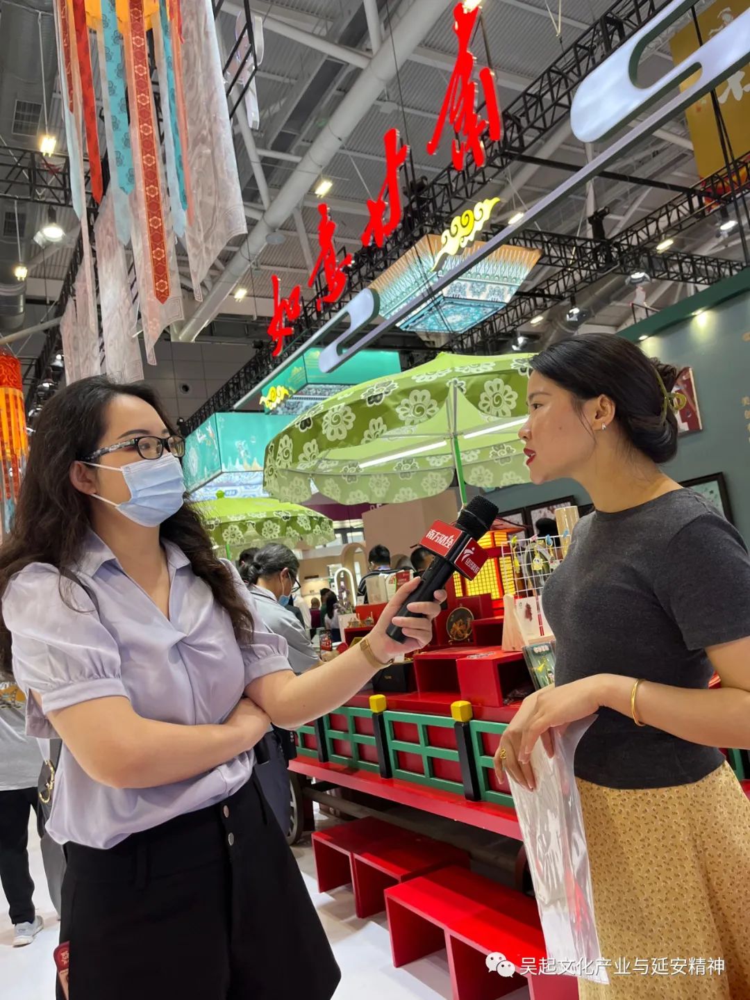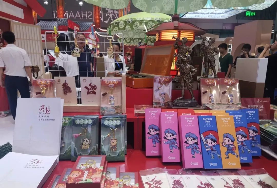 今年文博会“文化+旅游”“文化+创意”的新业态、新举措争相亮相。在陕西展馆,“缩小版”的唐风集市被“搬”进展馆,身着汉服的少女、悬于梁顶的鱼灯让人仿佛置身古长安城,将西安的历史风貌活态呈现。