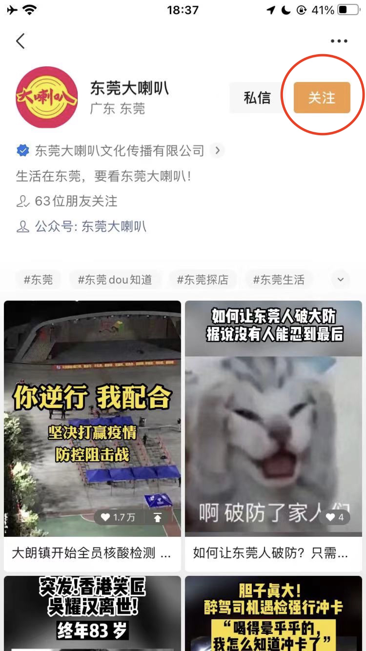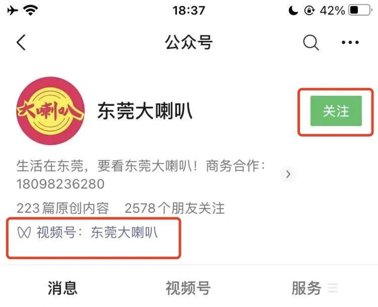 视频号:东莞大喇叭,进入视频号页面,再点击"关注",那就同时关注我们公众号和视频号啦!