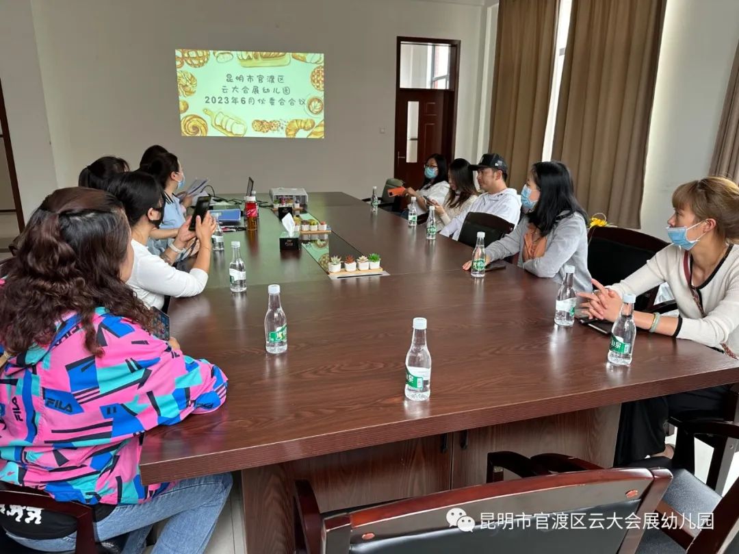 谭老师对6月重点工作开展情况、园所伙食管理进行了介绍,贾医生对幼儿每周食谱制定及幼儿膳食营养搭配等方面的情况进行详细讲解。