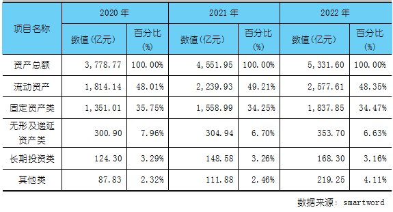 图表:2020-2022年食品制造业资产构成表
