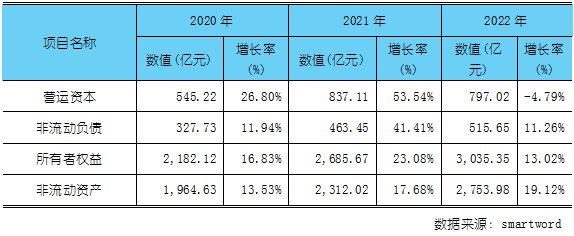 图表:2020-2022年食品制造业运营资本增减变化表