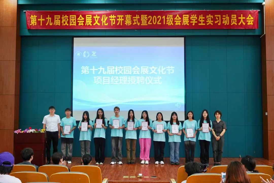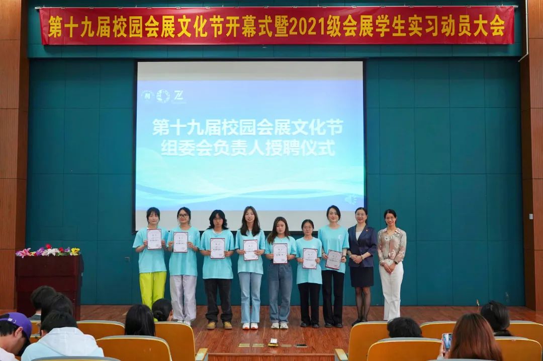 参会领导与嘉宾为第十九届校园会展文化节组委会负责人、项目经理颁发聘书并合影。