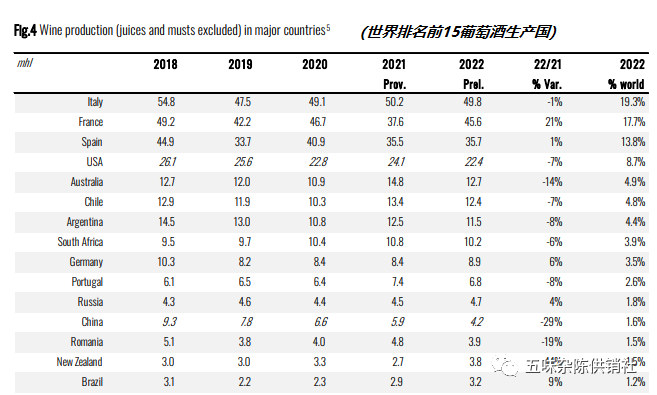 意大利的产量相对稳定,较2021年下降了1%,法国的产量较2021年增长了21%,西班牙的产量较2021年增长了1%。
