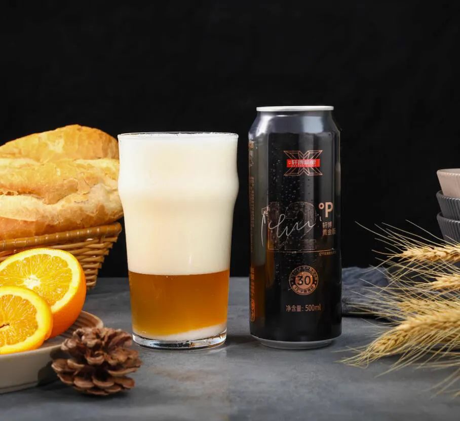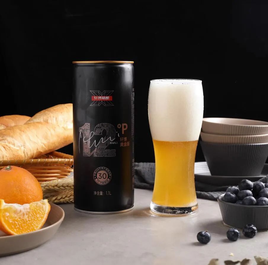 轩博精酿啤酒经过28天长周期发酵,不加水稀释直接罐装出厂,严选啤酒花、大麦等原料。