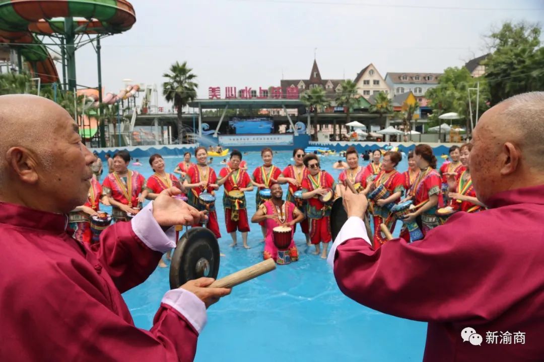 “我国非遗项目有很多,手鼓也是其中之一。今天我们首次尝试在水中表演,在鼓声与水花的碰撞中,找到了不一样的氛围和热情,非常兴奋。”刚结束完水上表演的民族手鼓舞团成员陈文英激动地说。作为此次涪陵区非遗购物节的重头戏,“水上非遗”分会场可谓热闹非凡。民族手鼓舞遇上传统非遗舞龙,动人山歌焦石民歌碰上热闹喜庆的龙潭八牌锣鼓,只见水花飞扬,龙舞翻飞,山歌清脆,锣鼓喧天,四大方阵在水中用音乐舞蹈碰撞激情,游客们也被舞乐点燃,纷纷加入其中,随着鼓点在水中纵情舞动,欢笑声、水浪声、锣鼓声、高歌声,声声动人,传统文化在水上“新舞台”焕发出新的时代魅力。