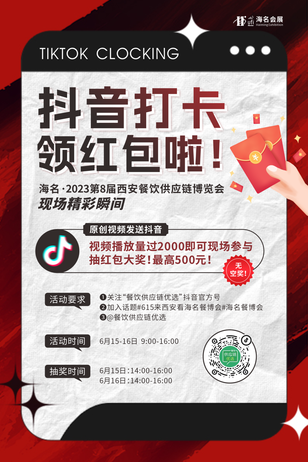 海名·2023第8届西安餐饮供应链博览会现场精彩瞬间原创视频发送抖音视频播放量过2000即可现场参与抽红包大奖!最高500元!无空奖