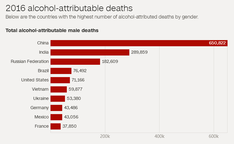 最后,在世界著名医学杂志《柳叶刀》上,全球疾病负担研究组研究发现:喝酒不能带来任何健康收益,适量饮酒有益的说法,根本就不存在!而且,饮酒是全世界范围内导致中青年男性(15-49岁)死亡的头号凶手!