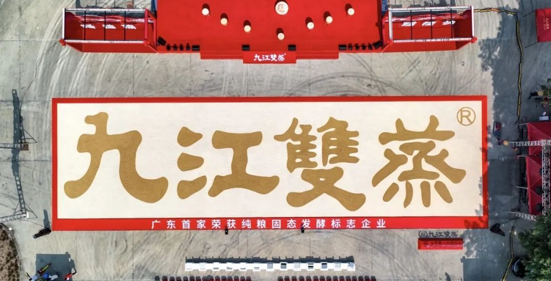 6月3日下午,在广东佛山双蒸1821酒庄广场,吉尼斯世界挑战——世界最大纯粮标志,随着一众领导将手中的米投在了前方的巨型LOGO上,由无数米粒堆起的“九江双蒸”品牌标识在此刻终于完整。此项吉尼斯世界挑战挑战内容为:以“珍珠米+籼米谷物” 组合摆制成442.76m²的九江双蒸品牌商标,并由吉尼斯世界纪录认证官现场认证。广东省食品医药行业联合党委书记张俊修受邀出席活动。