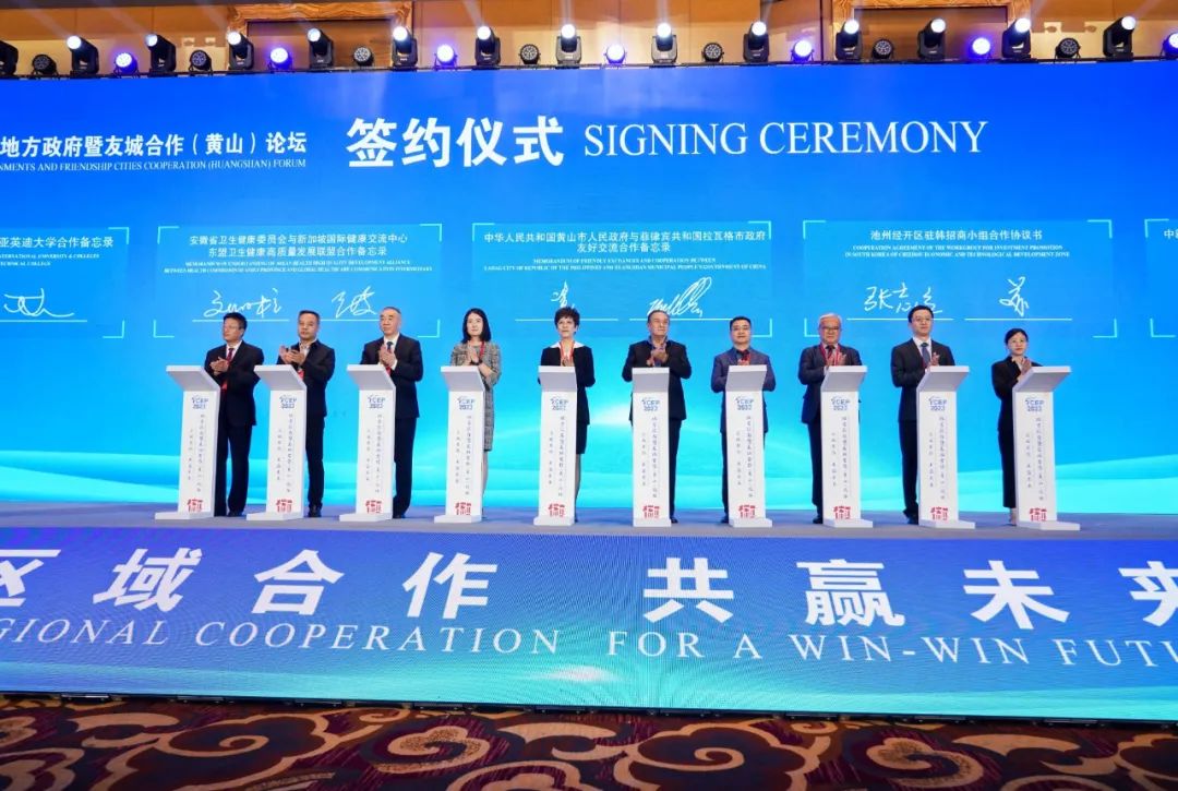 本次论坛以“区域合作 共赢未来”为主题,包括开幕式暨主旨报告、RCEP成员国友城对话会、RCEP成员国经贸和开发区合作恳谈会、RCEP成员国文旅产业合作恳谈会、生命健康分论坛、文旅商品展览展示等多个活动。来自RCEP成员国地方政府及友好省州负责人、RCEP国家20余个侨团40余位侨领、世界500强高管和知名企业负责人、境内外商协会和投资机构负责人、国内外知名专家学者等约500人出席了论坛。参会各方代表围绕深化政府间友好交往,经贸、文旅产业发展,生命健康和医疗卫生领域等多个主题,共同探讨合作发展新机遇。在开幕式签约仪式上,由马来西亚安徽总商会积极促成的合作项目——亳州职业技术学院与马来西亚英迪大学正式签署合作备忘录。