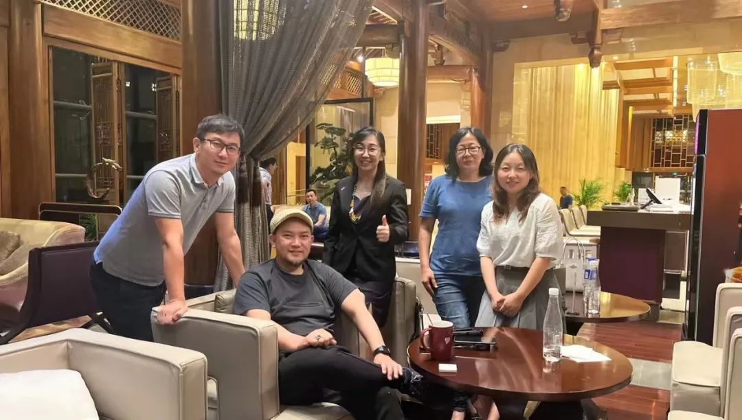 ▲安徽趣马来国际供应链有限公司副总经理、马来西亚安徽总商会副秘书长付明明(右一)接受马来西亚中央电视台RTM专访