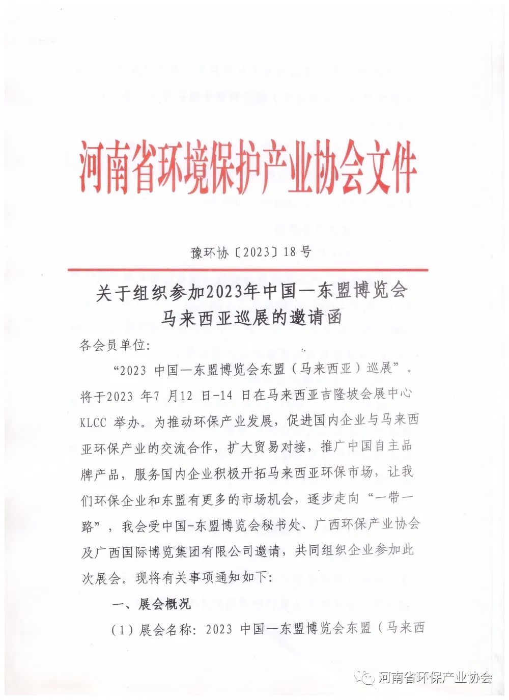 关于组织参加2023年中国—东盟博览会马来西亚巡展的邀请函