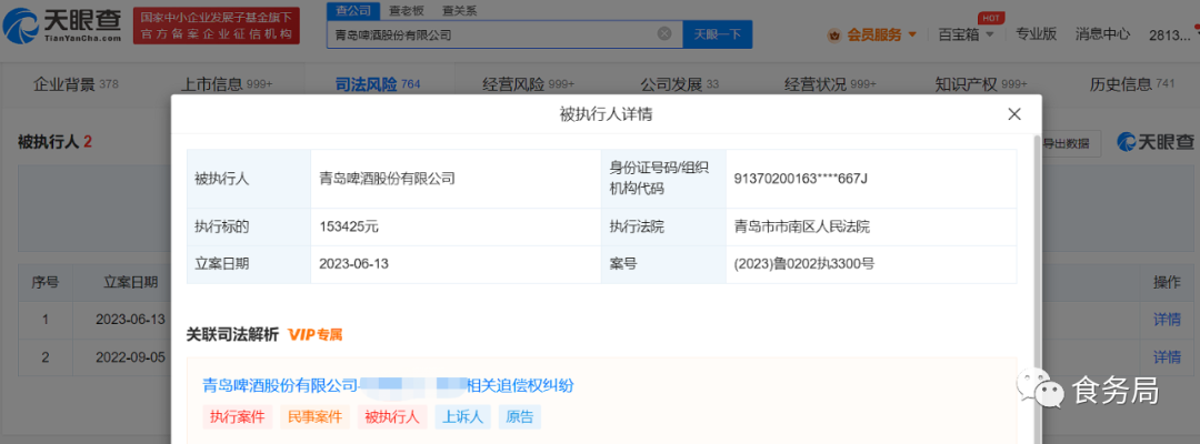 近日,青岛啤酒(600600)新增一则被执行人信息,执行标的15万余元,关联案件为追偿权纠纷,执行法院为青岛市市南区人民法院。