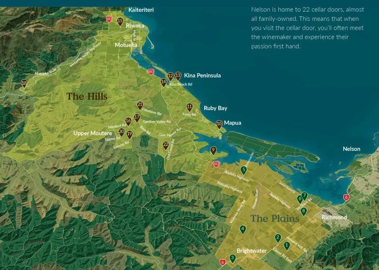 尼尔森(Nelson)地区,新西兰的商业酒花种植区,并集中在蒙特雷山(Moutere Hills)和威美亚平原(Waimea Plains)。同时,这里还是新西兰重要的葡萄产区,出产一种原产法国的白葡萄品种Sauvignon Blanc,别名长相思。