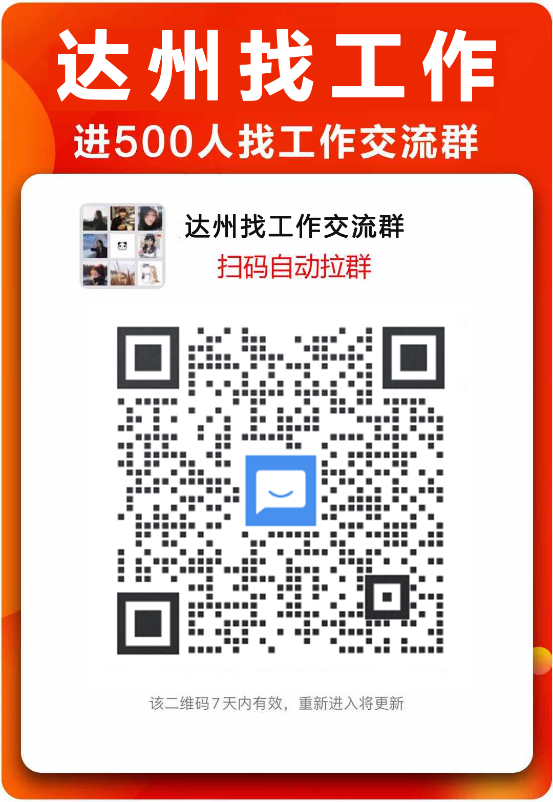 进500人找工作交流群,每日推荐10+岗位信息