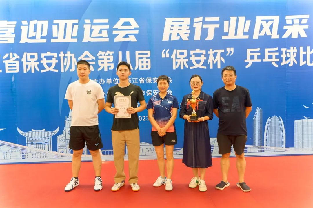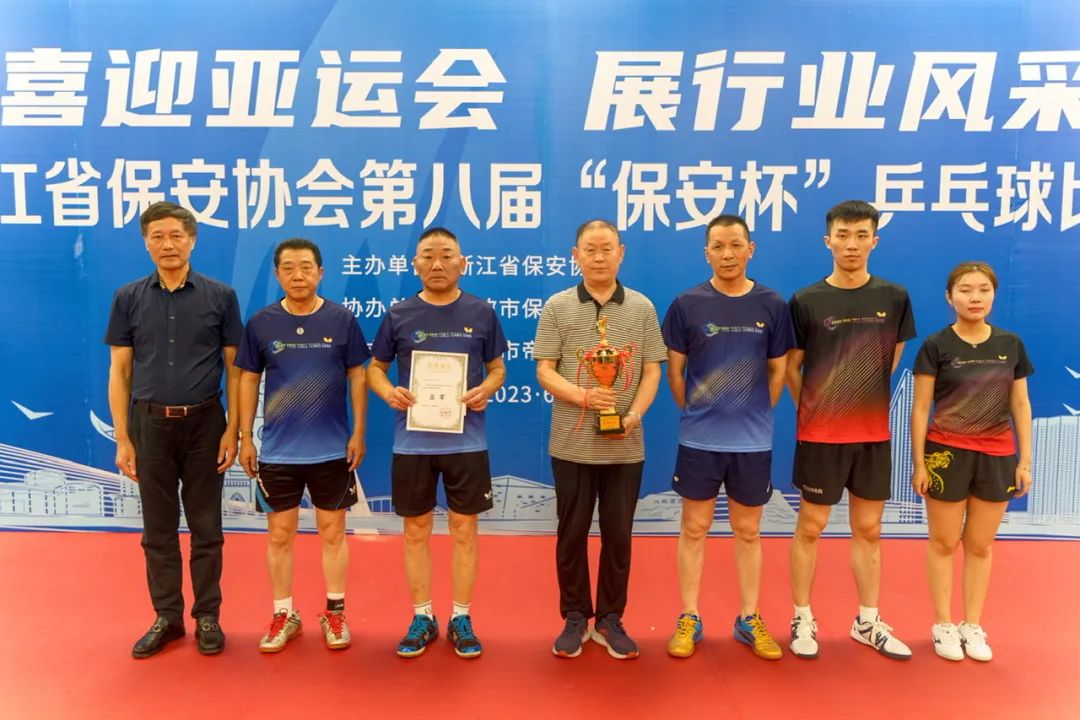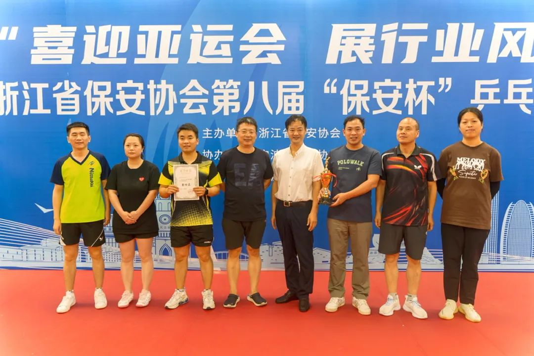 浙江省保安协会第八届“保安杯”乒乓球比赛在庄严的国歌声中圆满闭幕。本次比赛的成功举办不仅加强了保安行业内部的凝聚力,也进一步提升了浙江保安业在体育赛事组织方面的影响力。接下来,我们将继续积极响应亚运会的号召,加强保安人员的培训和素质提升,为亚运盛会的安全保障贡献力量。
