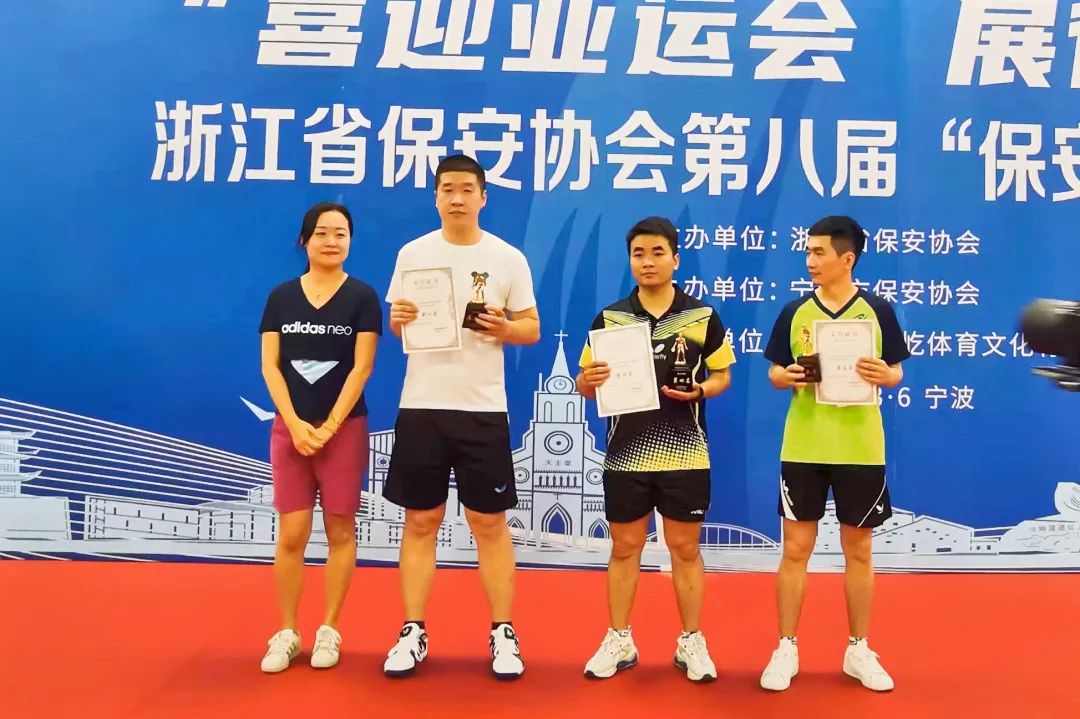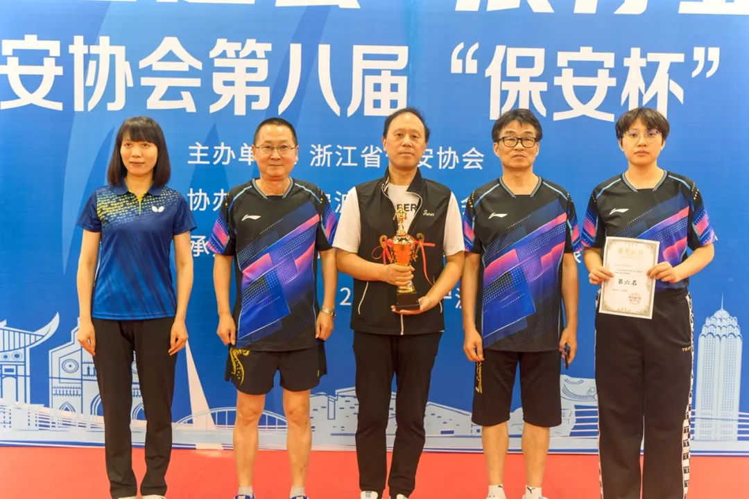 经过两天的奋力拼搏,激烈角逐,绍兴市保安协会代表队、嘉兴市保安协会代表队、温州市保安协会代表队、金华市保安协会代表队、宁波市保安协会代表队、杭州市保安协会代表队分获混合团体前六名。 绍兴代表队汤健翔、嘉兴代表队郭浩文、温州代表队刘泊汀、金华代表队邢长威、金华代表队蔡航、宁波代表队林路分获男子单打前六名。绍兴代表队王丽倩、嘉兴代表队刘柯辰、杭州代表队赵一吉、台州代表队周翠萍、温州代表队缪羽蕙、宁波代表队毕伟玉分获女子单打前六名。