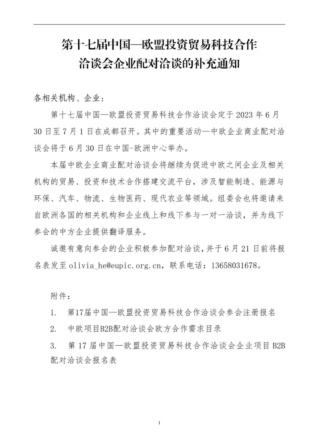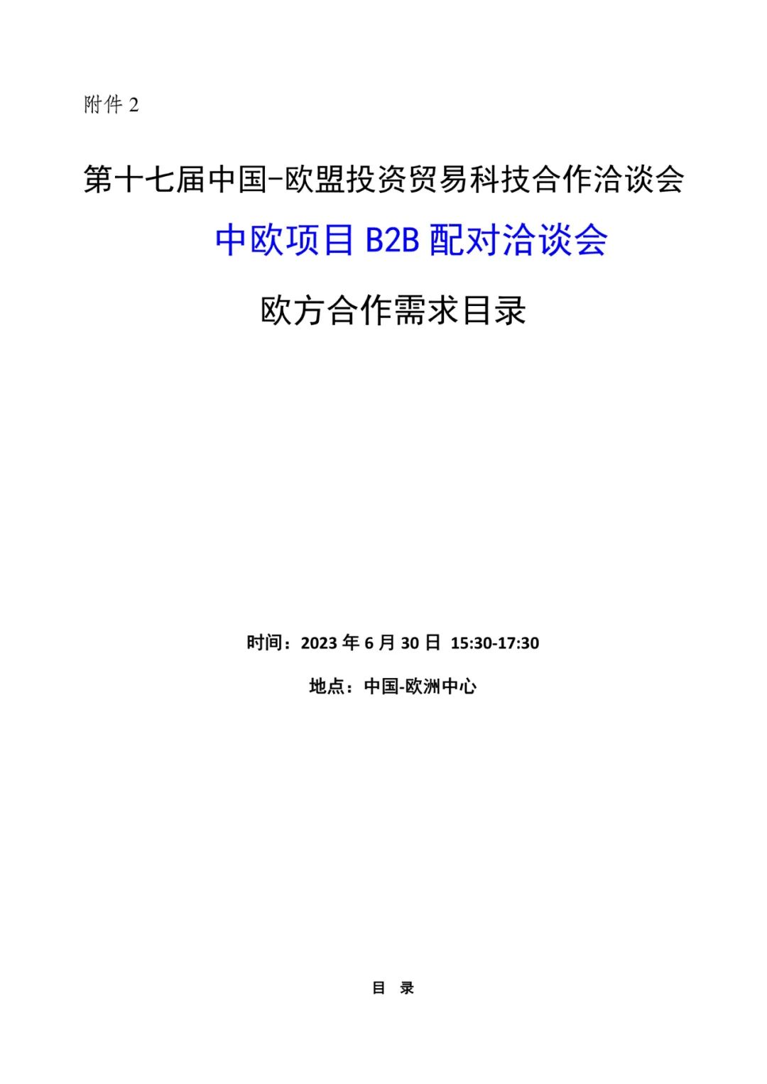 第十七届中国—欧盟投资贸易科技合作洽谈会—中欧企业商业配对洽谈会将于 6 月 30 日在中国-欧洲中心举办,组委会精心邀请了来自欧洲各国的机构和企业线上和线下参与一对一洽谈,并为线下参会的中方企业提供翻译服务。