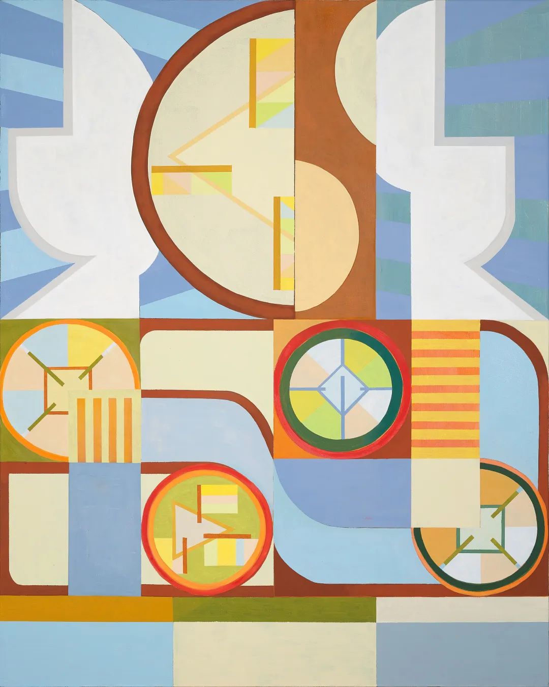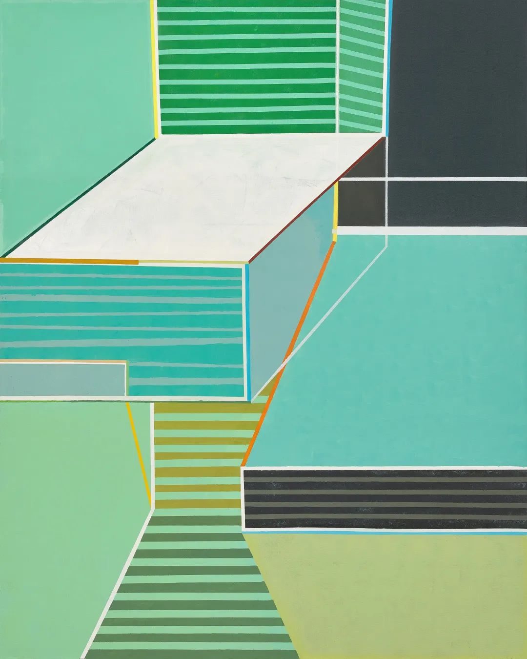 色彩、几何结构像是一道万能公式,在画面上自由地穿插、重叠,不同的颜色时而互相干扰形成冲突,时而互相抑制达到平衡,再没有比他们两者之间的关系更贴合我想表达的了。