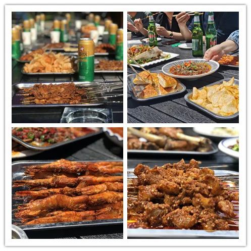 吃着烧烤,喝着美酒