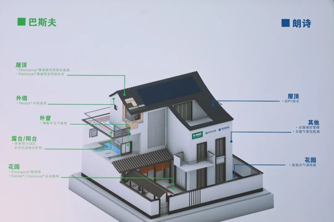 什么是“零碳健康舒适小屋”?在C001展位上,建筑及相关领域全国领先的绿色技术服务公司朗绿科技/朗诗控股,与巴斯夫携手打造的“零碳健康舒适小屋”项目的模型精彩亮相。