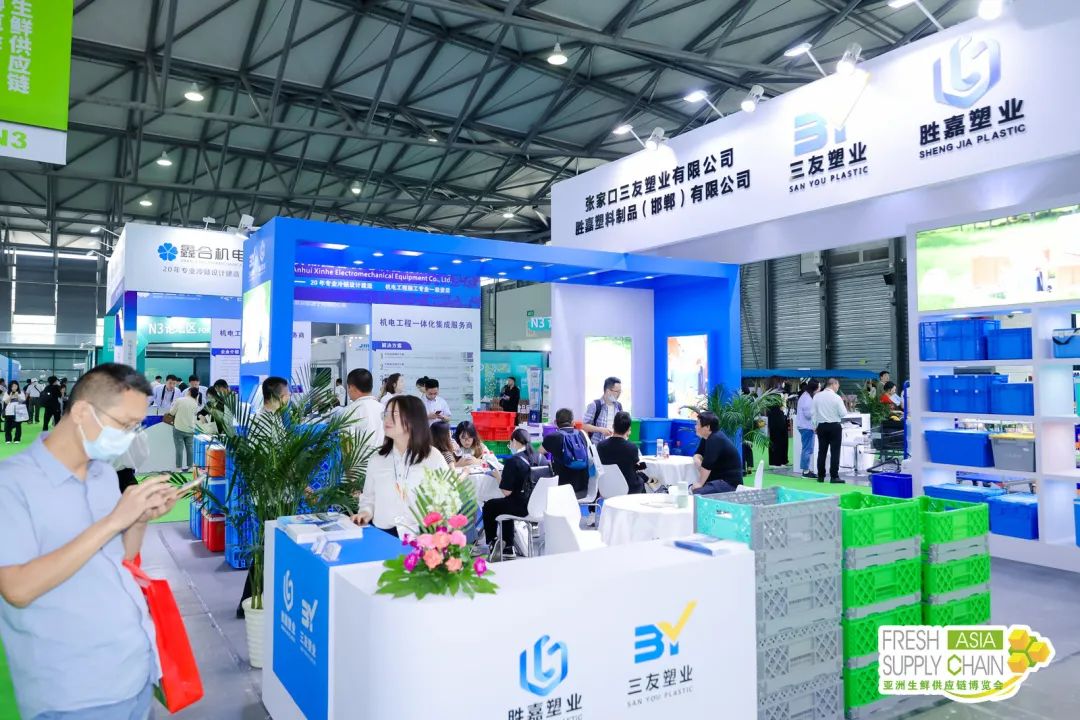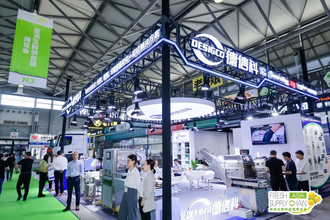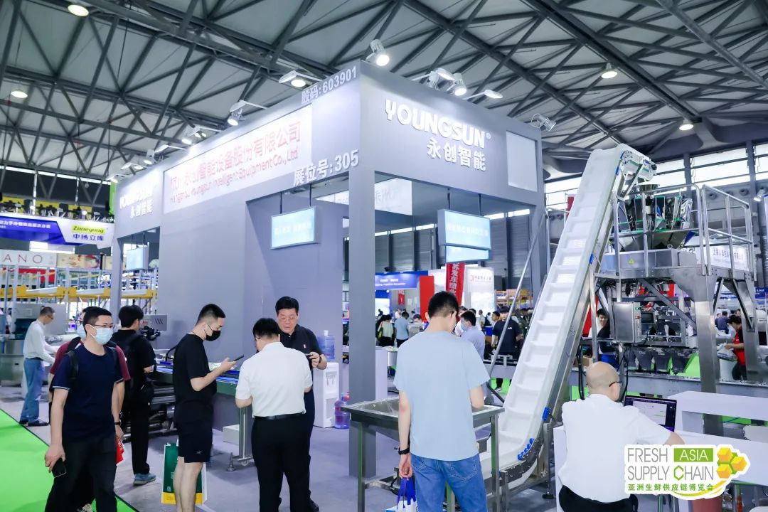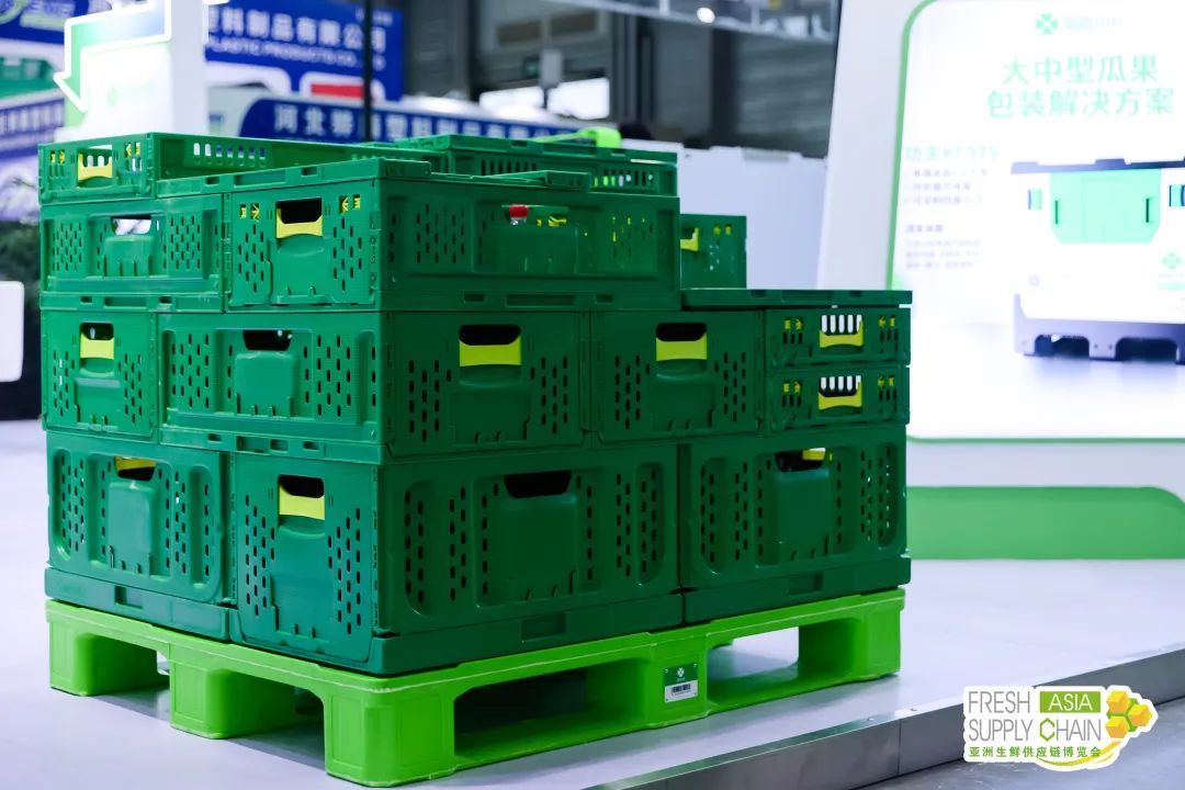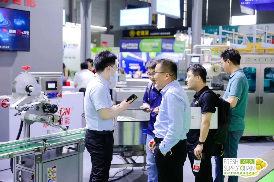 永创智能、温州大江、德信科、力彩、来贺、碧彩、浩铭达、积亿机械、青岛中科英泰、德皓电子等生鲜加工包装称重“明星”企业现场带来了创新“锁鲜”新科技、高效可循环的生鲜周转箱、监测贴标包装一体化的称重设备等……不仅充分提升优化消费者在生鲜产品消费上的体验感,同时更满足细分市场、个性化的物流和包装解决方案,能高效助力企业降本增效,展现了生鲜物流企业逐步向绿色低碳内核目标践行的成果。