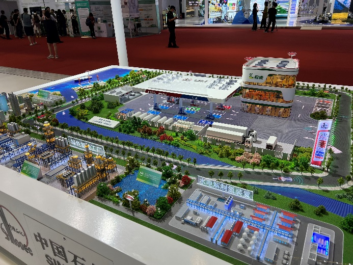 中国石化通过氢能产业沙盘展现了其当前的氢能产业布局。据介绍,中国石化炼油能力和加氢站数量在全球均排名第一,其每年氢气生产利用量约为445万吨,是全国最大的氢气生产利用主体。目前,中国石化锚定打造中国第一氢能公司的目标,建立了涵盖“制储运加用研”的氢能全产业链条,聚焦氢能交通、绿氢炼化两大领域,大力发展氢能一体化业务,推动绿色化转型发展。中国石化目前已建成9家炼化企业的氢纯化及充装设施,合计燃料电池总供氢能力1.9万标方/时,累计建成98座加氢站,并稳步推进新疆库车、内蒙古鄂尔多斯等大型风光融合绿氢示范项目,通过技术优化降低了绿氢生产成本,也正在攻克当下譬如波动性可再生能源制氢以及高压长距离管道输氢、储氢材料等技术。中国石化认为,氢能未来可期。本届碳博会上,上海电气集中展现新能源装备的阶段性成果,展出其在新能源赛道风光储氢四大新品,分别为:16+兆瓦全海域大容量风机、20吉瓦异质结光伏整线装备、500千瓦/3000千瓦时模块化液流电池、2000标方/时碱性电解槽。其中,此次于碳博会上展出的2000标方/时碱性电解槽产品,是目前国内单体产氢量最大的电解水制氢产品,最大产氢量可扩容至2500标方/时,满足风光大基地、绿色化工/冶金等大规模制氢、用氢应用场景需求。此外在氢能领域,上海电气积极构筑“制储加用”环节核心装备集群。据介绍,上海电气可提供氢能“制、储、加、用”全产业链核心装备,为客户提供“可再生能源发电+电解水制氢+绿色化工/制储加一体站/氢储能”系统解决方案。在示范应用方面,上海电气建成国内首个应用于工业园区的“绿氢制-储-用”一体化示范项目,同时也是国内规模最大的可满足300标方/时PEM电解槽多功能测试验证平台。本届碳博会上,申能集团携旗下电力、燃气、金融、氢能、环保等板块的低碳实践集中亮相。其中,“遇见”氢能绿廊——上海氢能全产业链专项展是最大的亮点之一,展示了氢能全产业链的相关技术及最新产品。据介绍,申能作为氢能领域的先行者,目前形成了“三纵三横”发展战略。“三纵”是指三条高端装备制造路线,在氢气制备方面,申能与液化空气集团、上海化学工业区将建设上海规模最大的气氢和液氢充装中心;在储运设备方面,申能拥有国内领先的高压储运技术;在燃料电池方面,申能入股的氢晨科技发布了业内首个单堆300千瓦大功率燃料电池电堆,投资的氢能企业鲲华科技和鲲鹏氢能,发布了全球首套单堆250千瓦氢燃料电池发动机系统。除此之外,申能打造上海氢能基地、省外产业链应用一体化基地、氢能多元应用场景等三大横向示范应用场景,实现氢能应用完整商业闭环。本次碳博会上,“国际氢能谷”是临港集团展区的一大看点和亮点。“国际氢能谷”围绕“氢能产业链、服务链、场景链”主题,在本届碳博会上以国际氢能谷总体规划沙盘的形式首次完整展现园区风貌。“国际氢能谷”首期规划面积1.55平方公里,依托临港新片区的开放优势和制度优势,现已聚集康明斯、陕汽德创、氢晨科技等30余家氢能产业链上下游企业,形成了包括氢能整车、发动机系统、核心部件、关键材料、高端装备、场景应用、基础设施、检测认证为一体的全产业格局,是国内最具代表性的氢能产业发展的集聚地之一。6月11日碳博会开幕当天,临港集团还发布了包括氢晨科技“H3300燃料电池电堆”在内的“临港集团杯”绿色低碳十大创新技术产品,以及包括氢能中运量T2列车及氢能公交、国际氢能谷氢能产业服务等临港园区十大绿色场景。本次碳博会上,中国船舶展示了此前顺利下水的国内首艘入级中国船级社的氢燃料电池动力船“三峡氢舟1号”的模型。“三峡氢舟1号”采用氢燃料电池和锂电池动力系统,通过加注35MPa压缩氢气,采用氢燃料电池将氢气和氧气的化学能直接转换成电能后为全船提供电能,实现全程零污染排放。船舶为钢铝复合结构,总长49.9米,型宽10.4米、型深3.2米,定员80人。其氢燃料电池额定输出功率500千瓦,最高航速达到每小时28公里;巡航航速20公里每小时状态下,续航里程可达200公里。同时,中国船舶还在碳博会上展示了21万吨氨燃料散货船以及甲醇燃料大型游轮的模型。此外,中国船舶还以沙盘的形式展示了“风光氢热储一体化”领域的产业布局。据介绍,将依托新能源基地,利用可再生能源电解水制氢技术,积极推进“风光氢储”一体化项目,为绿氢与可再生能源融合发展探索经验,切实拓宽新能源应用场景,形成新能源就地消纳优势。作为全球航运物流业绿色转型先行者,马士基通过到2040年实现净零排放的路线图展示了其在碳中和及端到端业务发展方面的情况及规划。马士基努力实现端到端供应链脱碳,积极推动集装箱船队使用绿色甲醇替换传统燃料。其率先提出了建造甲醇双燃料船舶的计划,截至目前共订造了19艘碳中和甲醇集装箱船舶。其中1艘为支线船舶,是全球首艘绿色甲醇为燃料的集装箱船舶,2023年投入运营;另外18艘设计运力为16,000-17,000 TEU的大型远洋船舶,将于2024至2025年陆续投入运营。本次碳博会以海量的技术成果展示、顶尖科学家的思想碰撞,促进经济社会发展绿色低碳转型。这其中,发展氢能产业是助力能源系统绿色低碳转型的重要支撑。氢能,未来可期。