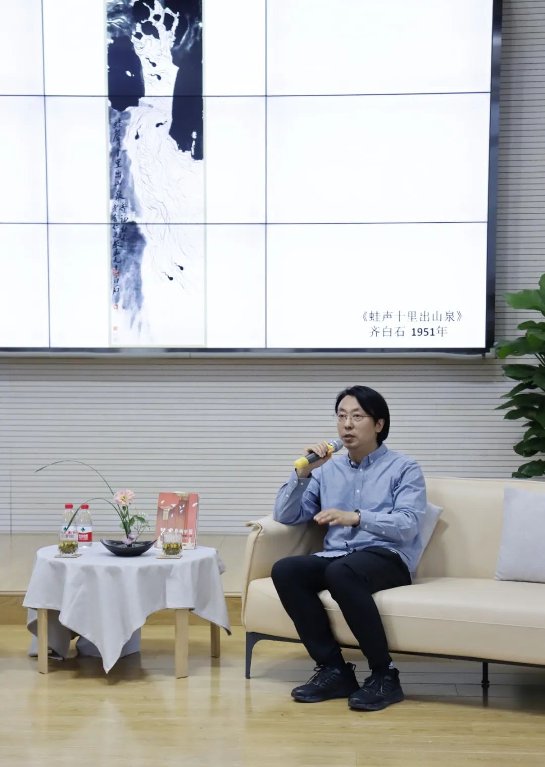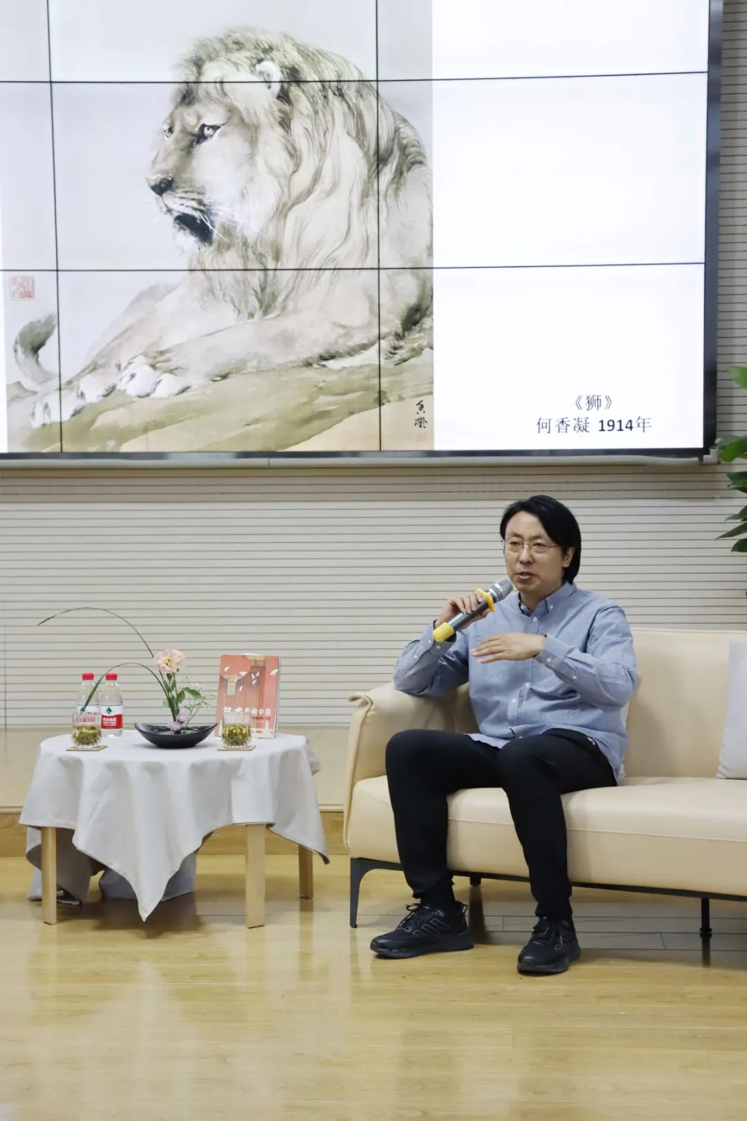 于洋教授首先表达了此次走出高校、面对社会的跨界交流是非常有意义的。随后,于教授围绕写作初衷及选作标准,针对百年中具有代表性与社会影响力的十幅中国画名作,为大家做了导读。《艺术影响中国·百年中国画名作十谈》的选作遵循了社会影响、时代意义、艺术水准、大家名作、南北地域和画科分布等六条原则,同时平衡并解决了精英性与通俗性、学术性与趣味性、历史性与时代性的矛盾。