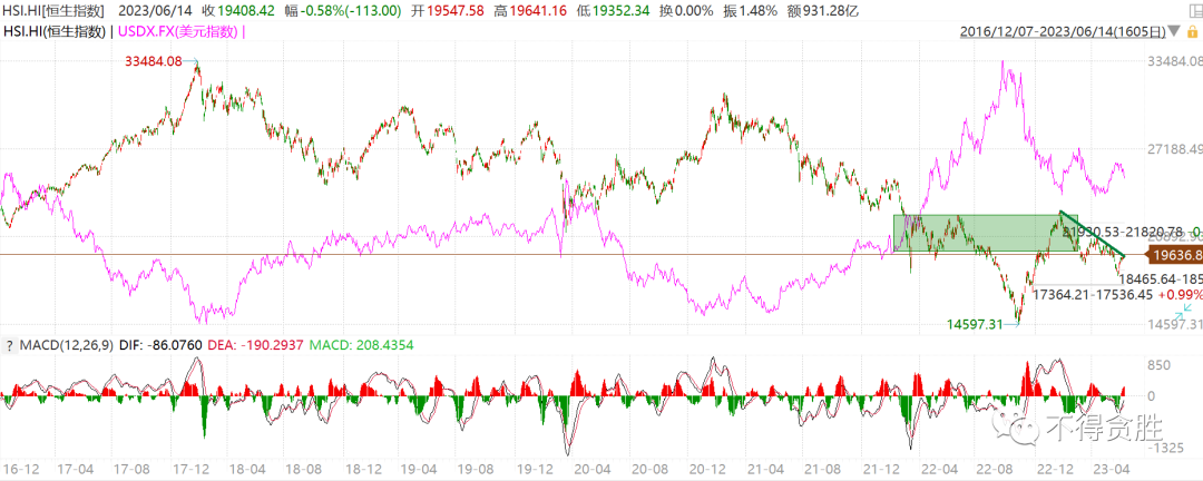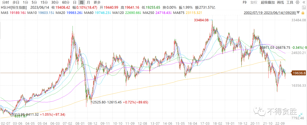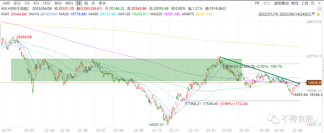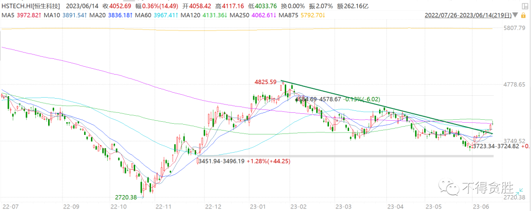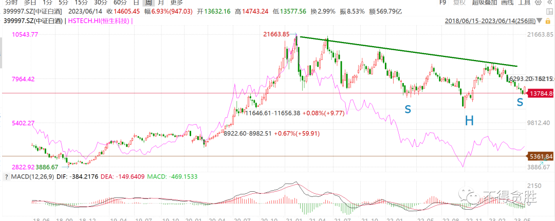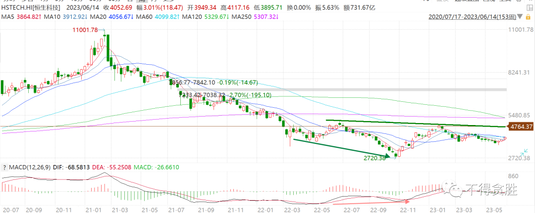 恒生科技底部钝化以后,有望周线金叉,且距离颈线有15%+。