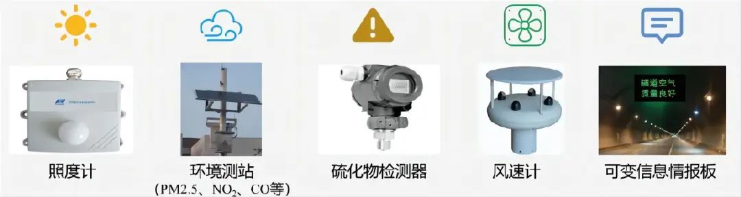 根据隧道设施实情,布设多种环境类传感器、推广易清洁环保涂料、应用新能源车辆设备。根据环境实测数据动态调整照明亮度,保证满足照明设计要求的同时实现节能降耗。利用实时采集的一氧化碳和二氧化氮浓度、风速等数据,控制程序自动判断污染物是否超出阈值,并自动控制风机适时启停。