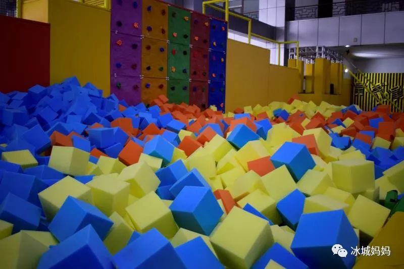海绵一旁配有儿童攀岩区,