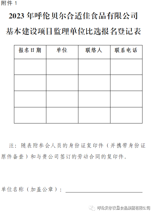 参选机构请仔细阅读公告,本次比选的最终解释权归呼伦贝尔合适佳食品有限公司所有。
