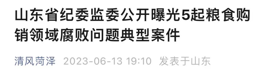 近日,山东省纪委监委公开曝光5起粮食购销领域腐败问题专项整治期间查处的典型案件,分别是:
