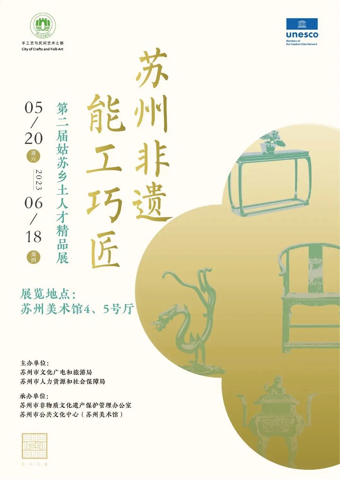 为进一步擦亮“苏州——手工艺与民间艺术之都”金字招牌,也为了更好地宣传和展示苏州非物质文化遗产,搭建姑苏乡土人才展示平台,苏州市文化广电和旅游局与苏州市人力资源和社会保障局于2022年在沧浪亭,为苏州市《姑苏乡土人才培养集聚三年行动计划》中获评的首批“能工巧匠”类人才举办了首届精品展。展示苏州传统技艺技能“传承者”的匠心之作,弘扬精益求精的工匠精神,有效带动技艺传承和产业发展。