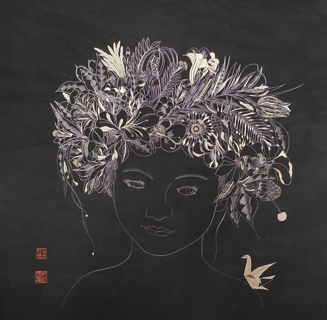 王锡麒画的最多的也最为人喜闻乐见的是古代仕女,一个个沉鱼落雁,闭月羞花。用中锋纤细活泼的线条勾脸,用浓墨勾发髻,线条无比流畅,简练灵动而富有弹性,恰到好处地状写了人物的服饰,衣袂飘飘,千姿百态,清丽娴雅。也正是凭着擅塑历代秀外慧中绮罗人物的一手绝活,让王锡麒饮誉画苑艺坛。