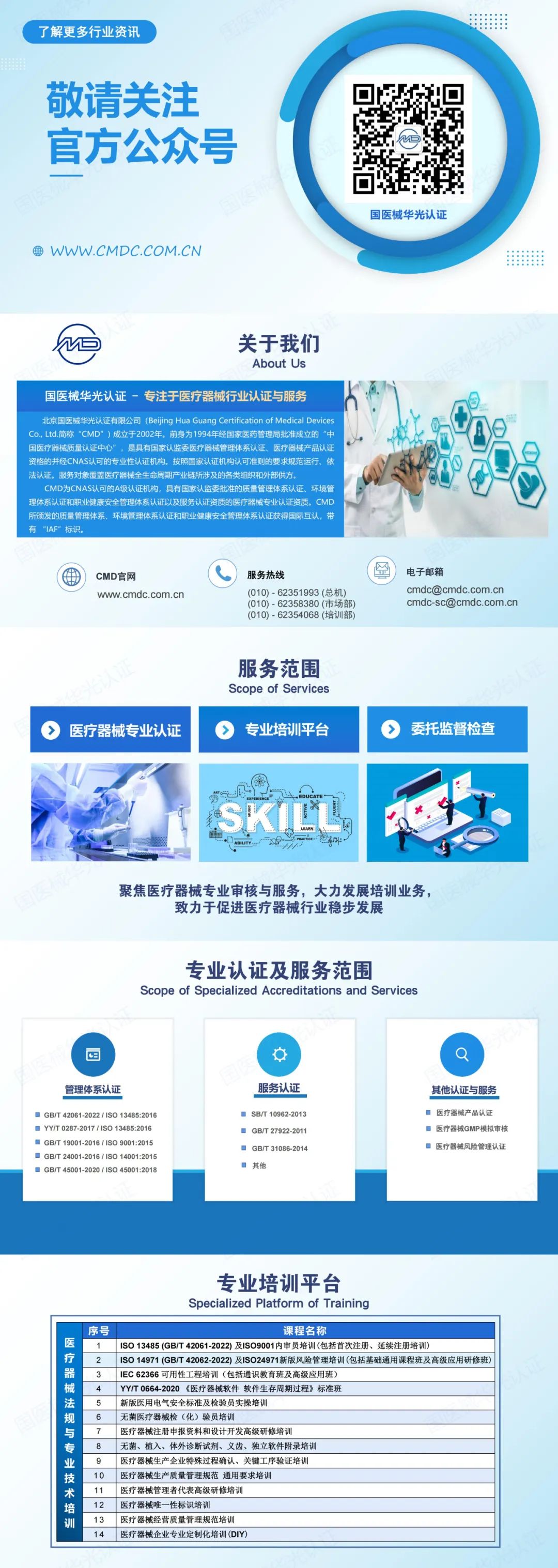CMD作为医疗器械专业领域认证服务机构,致力于促进医疗器械行业稳步发展,服务对像覆盖医疗器械全生命周期产业链所涉及的各类组织和外部供方。国医械华光认证受邀参加本次盛会,期待与各合作伙伴相聚在深圳。
